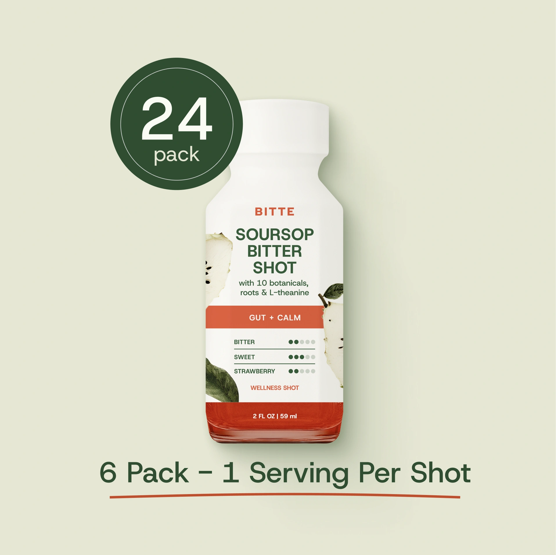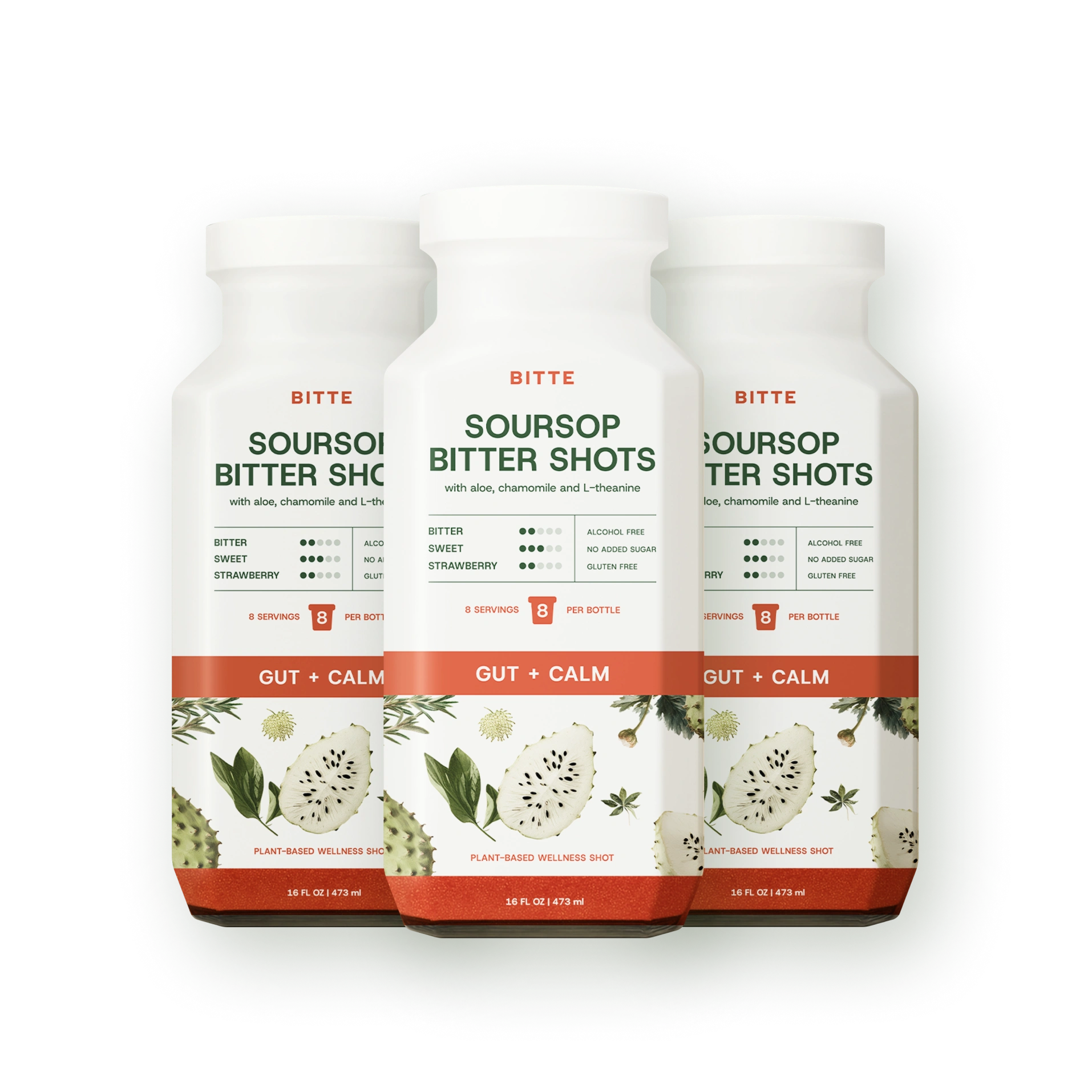 Bitte is a next-generation wellness shot designed for gut and nervous system support. Made with whole-plant soursop — including the whole fruit, leaf, and root — it’s blended with a refined matrix of calming herbs, adaptogens, and functional roots.