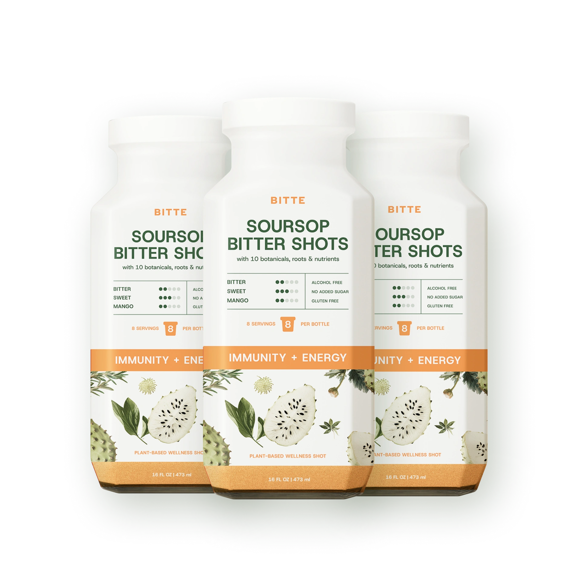 Most energy products rely on sugar, synthetic caffeine, or mystery blends. Bitte uses clinically studied botanicals like ginseng, guarana, and soursop in a lightly bitter, tropical formula designed for real energy and immune support—without the crash.