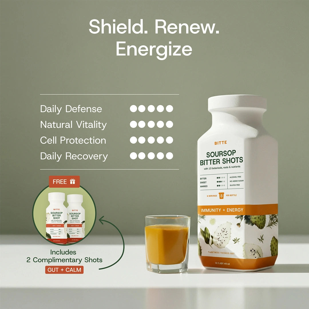 Made with whole-plant soursop — including the fruit, leaf, and root — it works with your body’s natural reflex to bitterness, an evolutionary response that activates defense and renewal from within.
