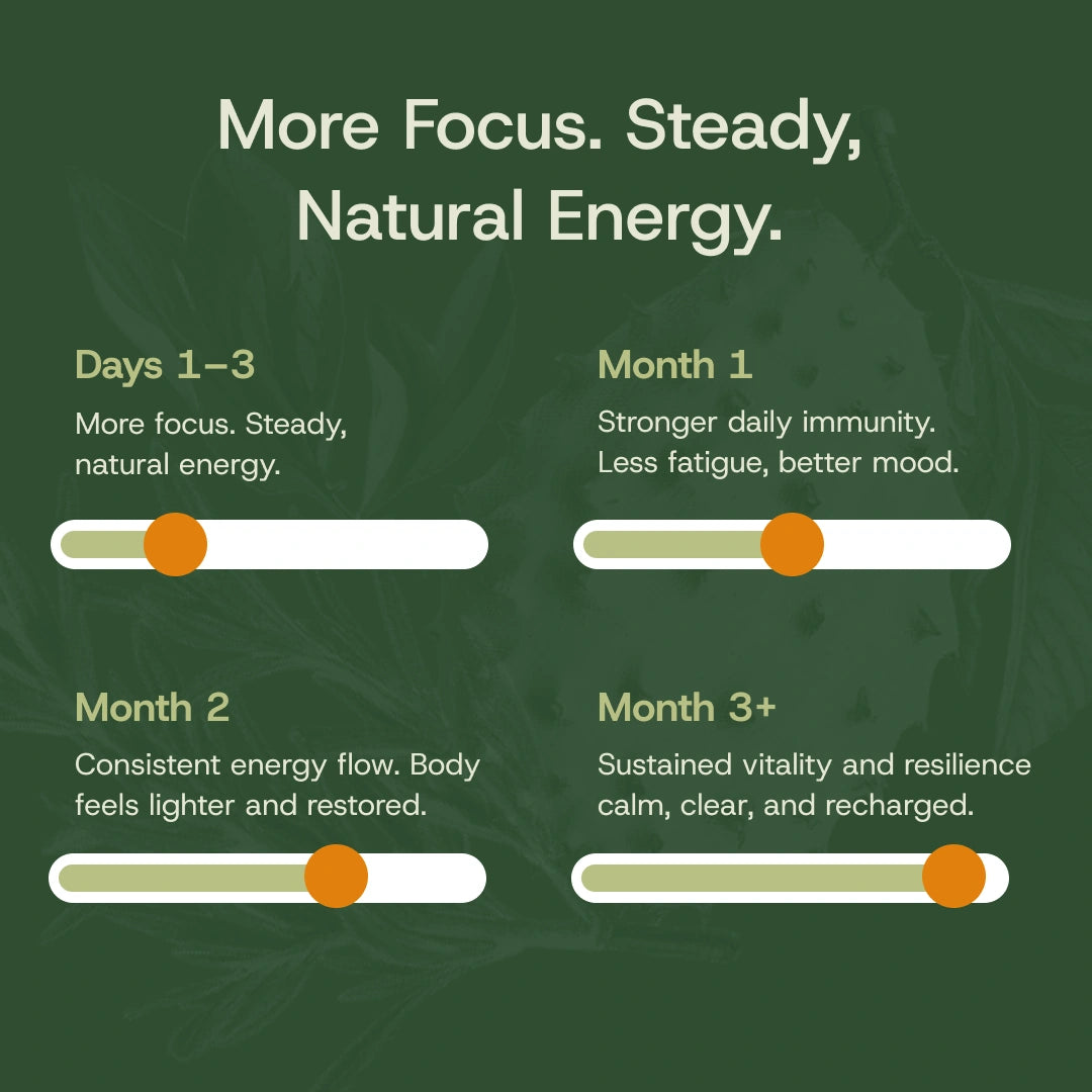 Most feel a natural lift in focus and energy within the first few days. Immune benefits build over time with daily use, helping your body stay resilient and balanced long term.